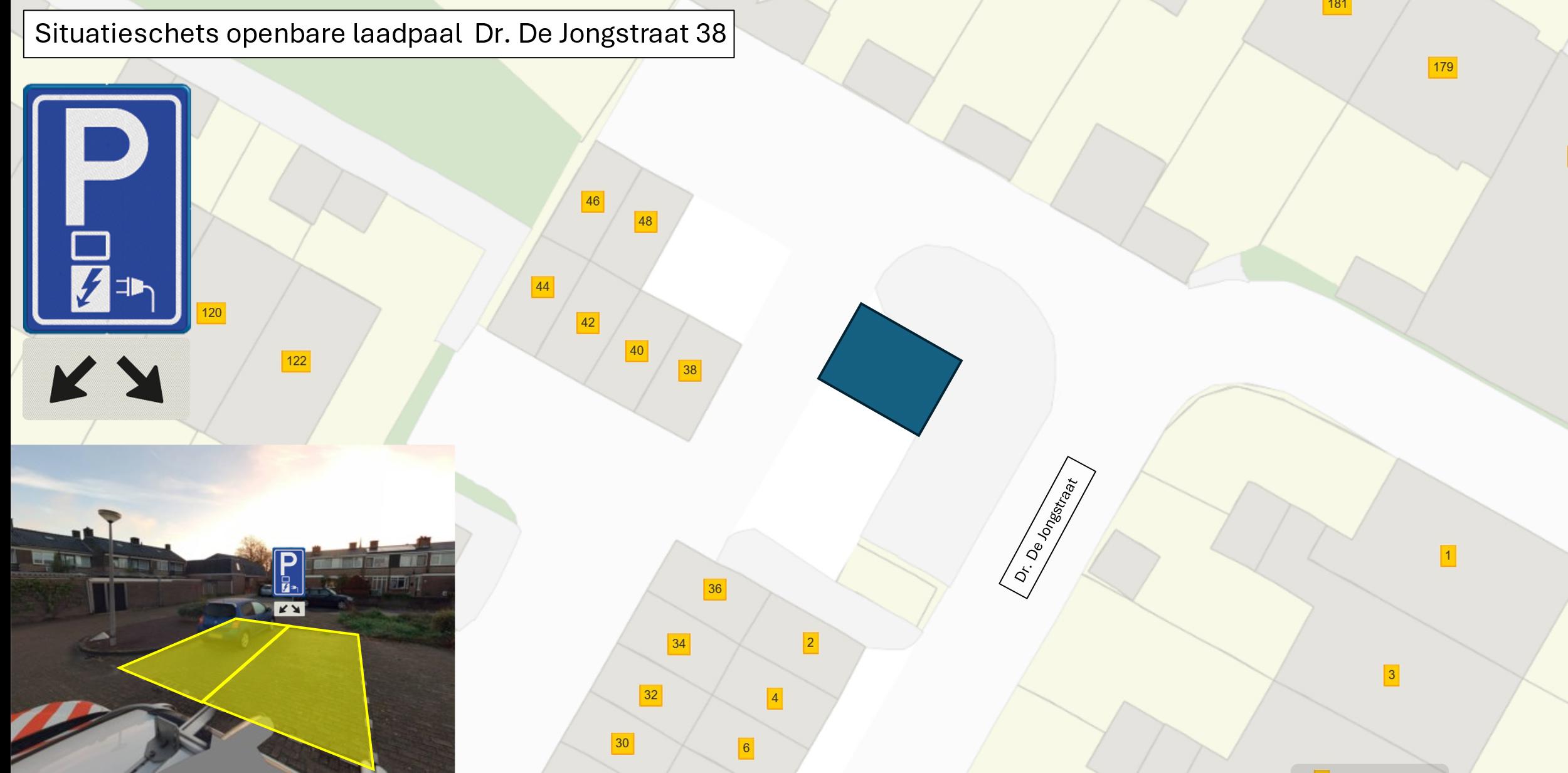 dat op basis van de hiervoor genoemde beleidsregel en de plankaart laadinfrastructuur een geschikte locatie is gevonden voor een laadvoorziening op de Dr. De Jongstraat ter hoogte van huisnummer 38;