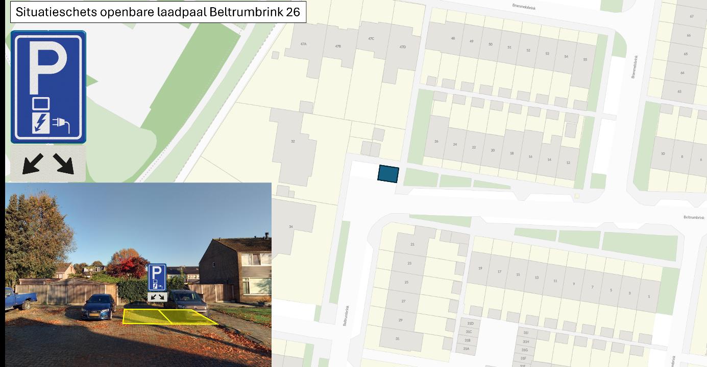 dat op basis van de hiervoor genoemde beleidsregel en de plankaart laadinfrastructuur een geschikte locatie is gevonden voor een laadvoorziening op de Beltrumbrink er hoogte van huisnummer 26;