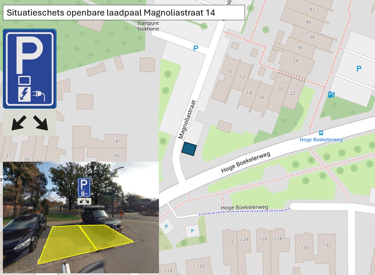 dat op basis van de hiervoor genoemde beleidsregel en de plankaart laadinfrastructuur een geschikte locatie is gevonden voor een laadvoorziening op de Magnoliastraat ter hoogte van nummer 14;