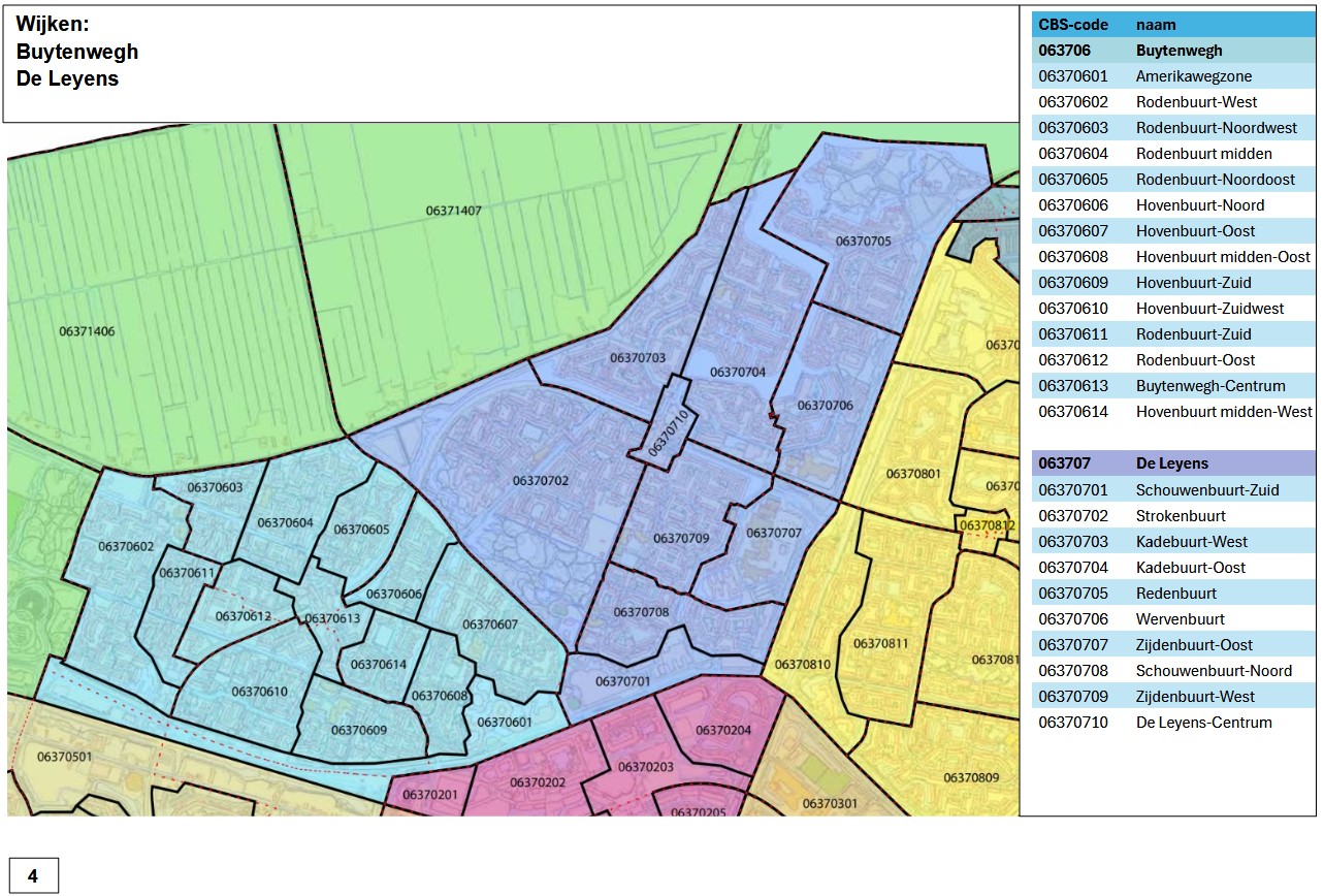 CBS codering van buurten bestaat uit acht karakters, namelijk de vier cijfers van de gemeentecode, de twee cijfers van de wijkcode, gevolgd door twee cijfers van de buurtcode