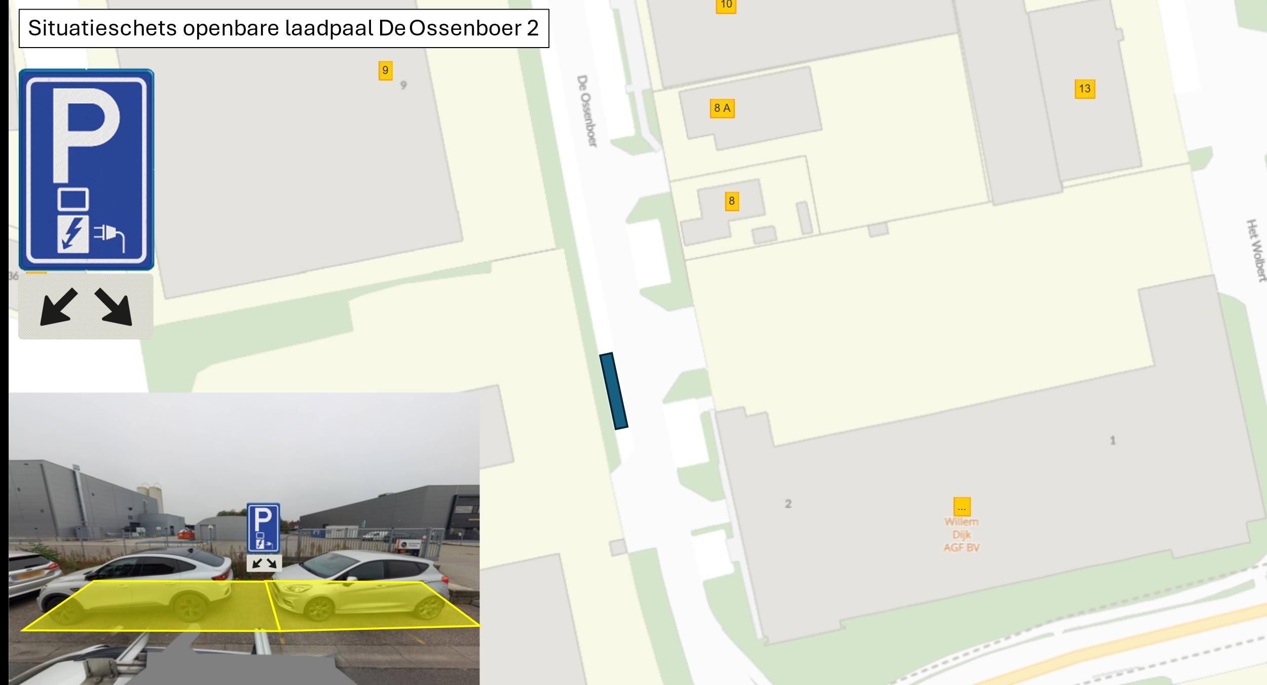 dat op basis van de hiervoor genoemde beleidsregel en de plankaart laadinfrastructuur een geschikte locatie is gevonden voor een laadvoorziening op De Ossenboer ter hoogte van huisnummer 2;