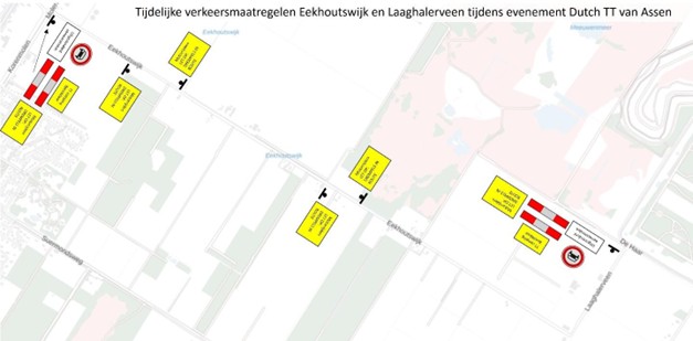 ● de Eekhoutswijk en Laaghalerveen onderdeel uitmaken van dit verkeersplan en worden gebruikt voor de aan- en afvoer van bezoekers met motoren naar het circuit van Assen tijdens de TT;