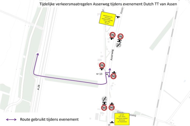 ● vanwege het jaarlijks terugkerend evenement de Dutch TT van Assen, een verkeersplan is opgesteld om diverse verkeersstromen middels tijdelijke maatregelen af te wikkelen;