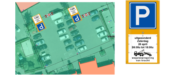 Het van toepassing verklaren van de Wegsleepverordening Land van Cuijk 2024 waar ook het onder 1 besloten parkeerverbod geldt door het plaatsen van onderbord Wegsleepregeling van kracht (OB304).