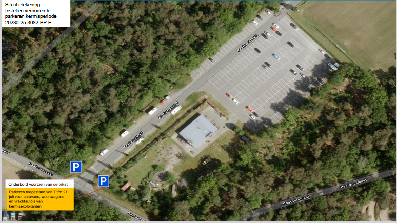 Gedurende de jaarlijkse periode van de maandag voorafgaand aan het tweede weekend van juli tot en met de vrijdag na het kermisweekend wordt het parkeerterrein van RKSV Nuenen aan de Pastoorsmast perceel 14, inclusief de camperplaatsen, exclusief gereserveerd voor het parkeren van woonwagens, caravans en vrachtauto’s van kermisexploitanten, zodat deze voertuigen ordelijk en zonder hinder voor de omgeving kunnen worden gestald.