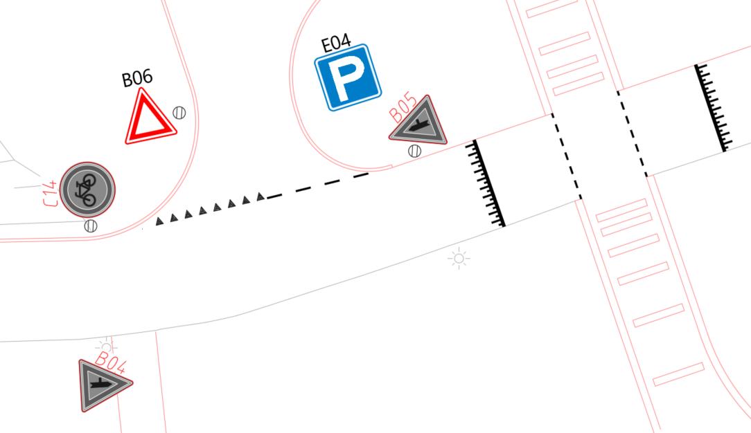 Een zebrapad wordt niet verwacht in een 30km/h zone. Omdat de oversteeklocatie door fietsers gebruikt kan worden is ervoor gekozen de oversteeklocatie alleen met kanalisatiestrepen te markeren.