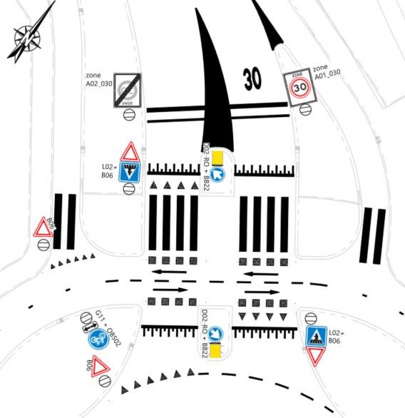 De fietspaden onderdeel van de hoofdfietsstructuur hebben voorrang, behoudens als deze een gebiedsontsluitingsweg kruisen. Hierbij is zowel rekening gehouden het comfort voor de fietser als de verkeersveiligheid