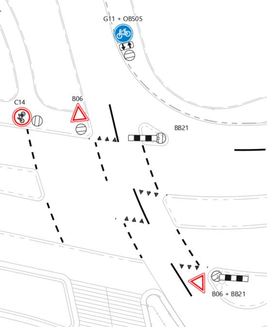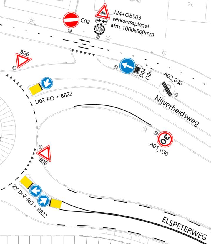 Tot plaatsing van bord G12 & B06 uit bijlage 1 van het RVV 1990 aan de oostelijke zijde van de fietsvoorziening nabij de westelijke arm van de rotonde, vanuit Elspeterweg 6;