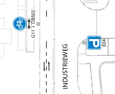 Tot plaatsing van bord G11 uit bijlage 1 van het RVV 1990 aan de oostelijke zijde van de fietsvoorziening die parallel loopt aan de Industrieweg, nabij Industrieweg 15.