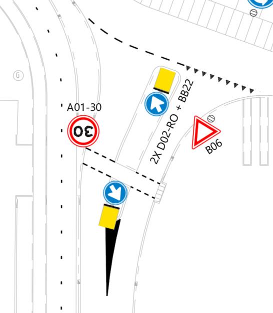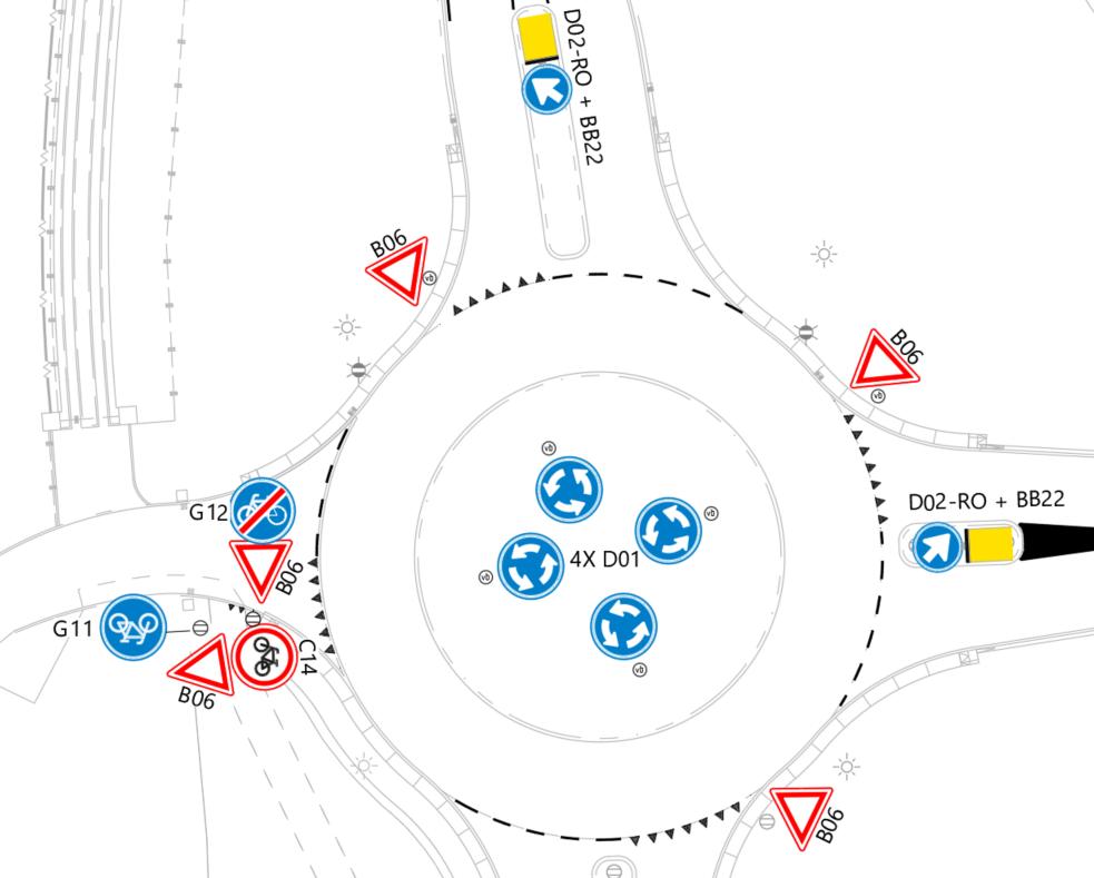 Tot plaatsing van bord D02-RO uit bijlage 1 van het RVV 1990 in de middengeleider van de Plesmanlaan bij de aanvoerende arm van de rotonde;