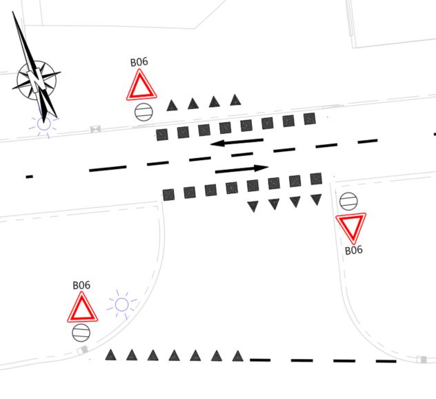 Tot plaatsing van bord L02 & B06 uit bijlage 1 van het RVV 1990 aan de oostzijde van de afvoerende arm van de Nijverheidsweg ter plaatse van voetgangersoversteek, nabij Nijverheidsweg 17;