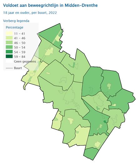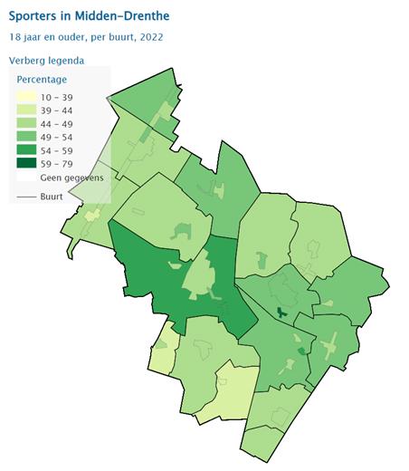 De Drentse Sportmonitor laat zien dat de wekelijkse sporterdeelname (18 jaar en ouder) in Midden-Drenthe 48,5% is (Drenthe 48,0%, NL 53,6%). Daarbij voldoet 47,9% van de inwoners van Midden-Drenthe aan de beweegrichtlijnen (Drenthe 46,0%, NL 47,5%). Deze percentages betreffen zowel binnensport, buitensport als ongeorganiseerde sport. Voldoende sporten en bewegen levert een belangrijke bijdrage aan een gezonde leefstijl. Net als in grote delen van Drenthe kampen in Midden-Drenthe meer mensen met overgewicht (55,5%) en ernstig overgewicht (17,0%) dan gemiddeld in Nederland (51,6%, 16,5%). Omdat sport en bewegen bijdraagt aan de (positieve) gezondheid, sociale cohesie en levensgeluk voert de gemeente Midden-Drenthe een actief sport- en beweegbeleid.