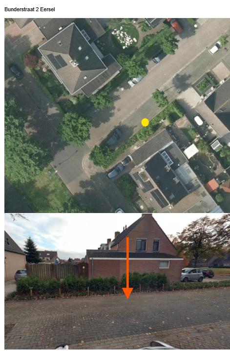 • nabij Markt 28, Bospoort 9, Mortel 41, Hoolstraat 51D, Bunderstraat 2 te Eersel en Putterstraat 33 te Vessem twee parkeerplaatsen aan te wijzen als parkeerplaats voor alleen het opladen van elektrische voertuigen zoals aangeduid op onderstaande tekening;