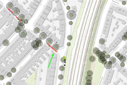 Esdoornstraat (ter hoogte van zijgevel Schutstraat huisnummer 50 t/m 56; wegvak: tussen Leliestraat en Schutstraat)
