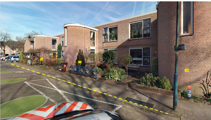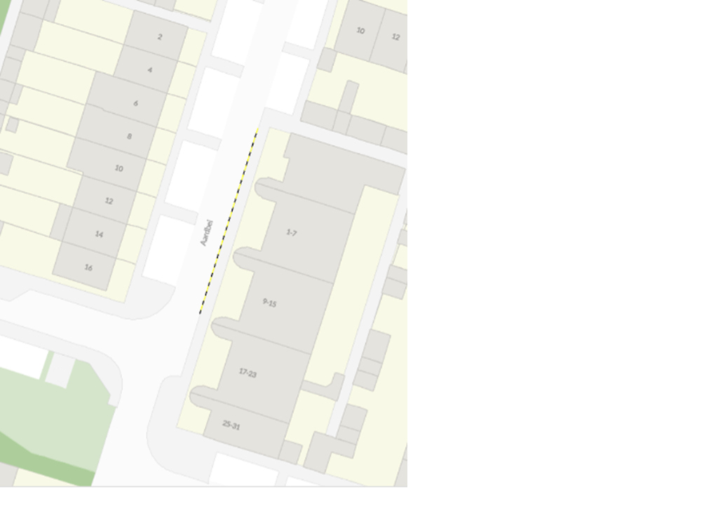 - een gele onderbroken streep dit parkeren verbiedt doordat er geen voertuigen geparkeerd mogen staan;