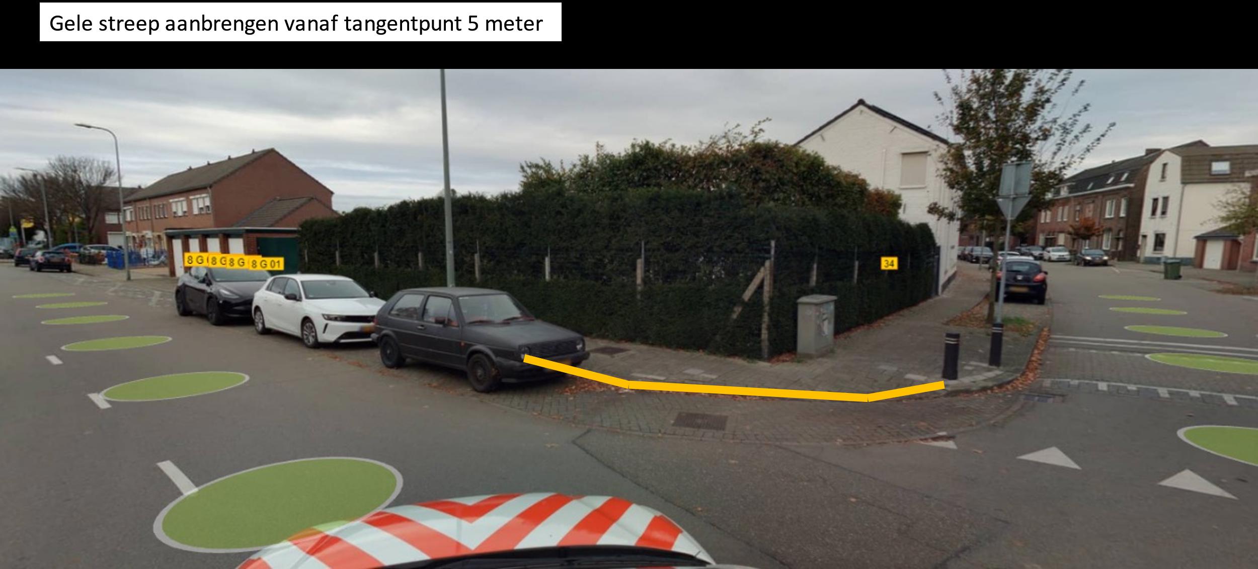 Aan de noordzijde van de Nijverheidsweg, ten westen van de aansluiting met de Demertstraat, staan regelmatig voertuigen geparkeerd. De inrichting in de betreffende bocht nodigt uit om te parkeren.