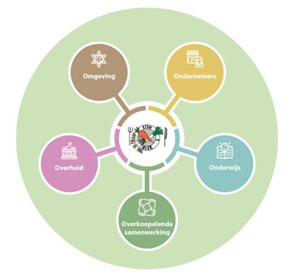 Bereidheid tot samenwerking: Door de ontmoetingen tijdens de kenniscafés en andere bijeenkomsten komen de 5 O’s (Omgeving, Ondernemers, Onderwijs, Overheid en Overkoepelende samenwerking) tot elkaar en ontdekken ze dat samenwerking de basis is voor concrete acties. Een mooi voorbeeld is de brainstormavond voor het opzetten van een voedselcoöperatie.