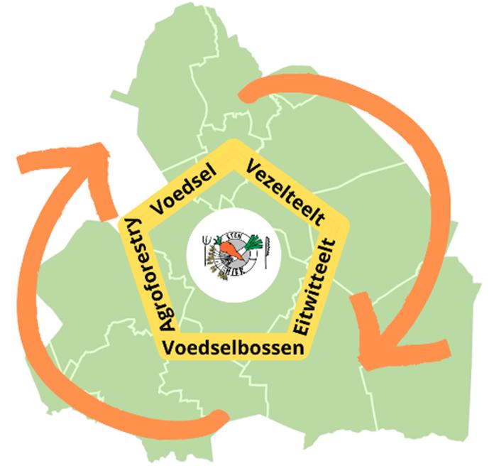 Voedsel kan niet los gezien worden van landbouwactiviteiten. Wij zien voedsel als één van de toekomstige grondstoffen, die we op grote schaal duurzaam kunnen produceren. We realiseren ons dat lokaal, gezond en duurzaam voedsel betaalbaar moet zijn en blijven. Wij geloven daarom sterk in een mix van de reguliere veeteelt en akkerbouw in combinatie met voedsel, vezelteelt, eiwitteelt en agroforestry/voedselbossen. Binnen die mix moet de voedselzekerheid gewaarborgd blijven.