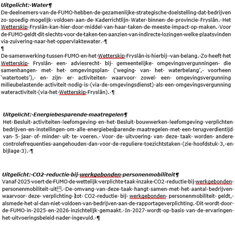 Deze uitvoerings- en handhavingsstrategie voor de basistaken is tot stand gekomen met inbreng van deelnemers aan de Gemeenschappelijke Regeling van de FUMO en de FUMO. Daarnaast is de uitvoerings- en handhavingsstrategie ter consultatie voorgelegd aan het Wetterskip Fryslân, de Veiligheidsregio Fryslân (brandweer en GGD), Rijkswaterstaat, het Openbaar Ministerie en de Omgevingsdienst Groningen.