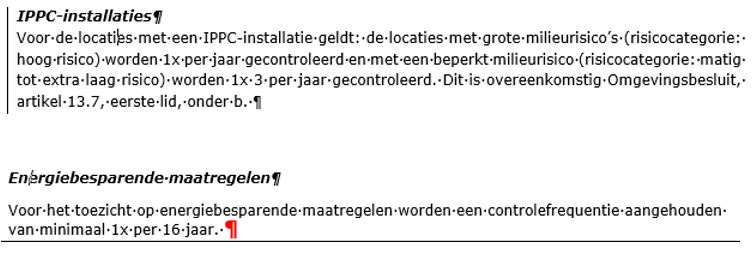 Activiteiten met bepaalde duur (zoals asbestsaneringen, bodemsaneringen en ontgrondingen) zijn incidenteel van aard en niet aan vaste locaties gebonden. Hierdoor is het ook niet mogelijk om met vaste controlefrequenties te werken. Bijlage 4 weergeeft het risicomodel voor activiteiten met bepaalde duur.