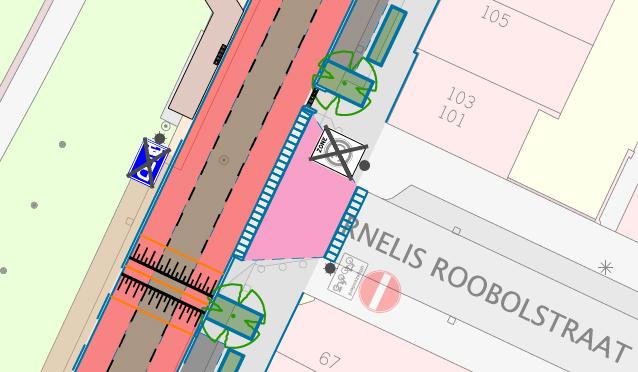Adriaan van Bergenstraat (schuin tegenover huisnummer 103, wegvak tussen Stauntonstraat en Cornelis Roobolstraat en tegenover huisnummer 41, wegvak tussen Nicolaas Ruychaverstraat en Prinses Margrietstraat)