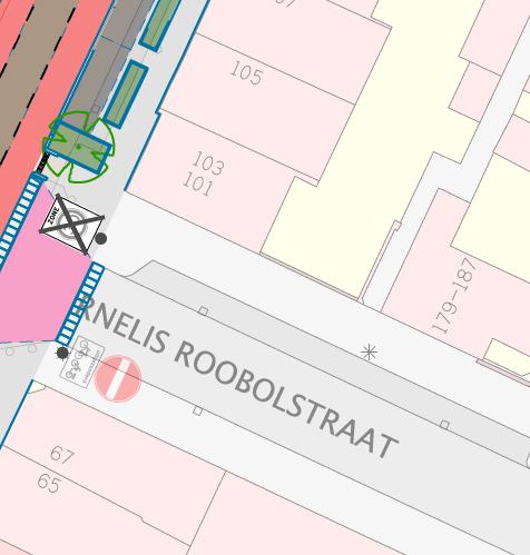 Cornelis Roobolstraat (ter hoogte van zijgevel Adriaan van Bergenstraat huisnummer 103, wegvak tussen Adam van Harenstraat en Adriaan van Bergenstraat)