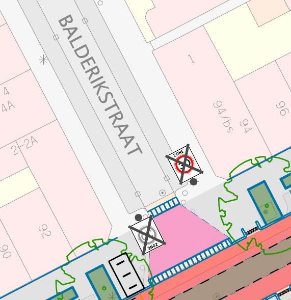 Balderikstraat (ter hoogte van zijgevel Sweder van Zuylenweg huisnummer 94, wegvak tussen Sweder van Zuylenweg en Balderikstraat huisnummer 13 (A1) en ter hoogte van huisnummer 2, wegvak tussen St.-Winfridusstraat en Sweder van Zuylenweg (A2))