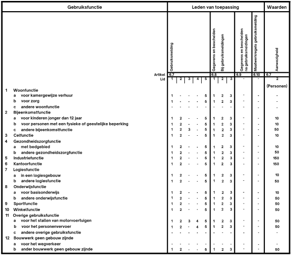 In bijgevoegde tabel geeft weer in welke gevallen een melding brandveilig gebruik moet worden gedaan.