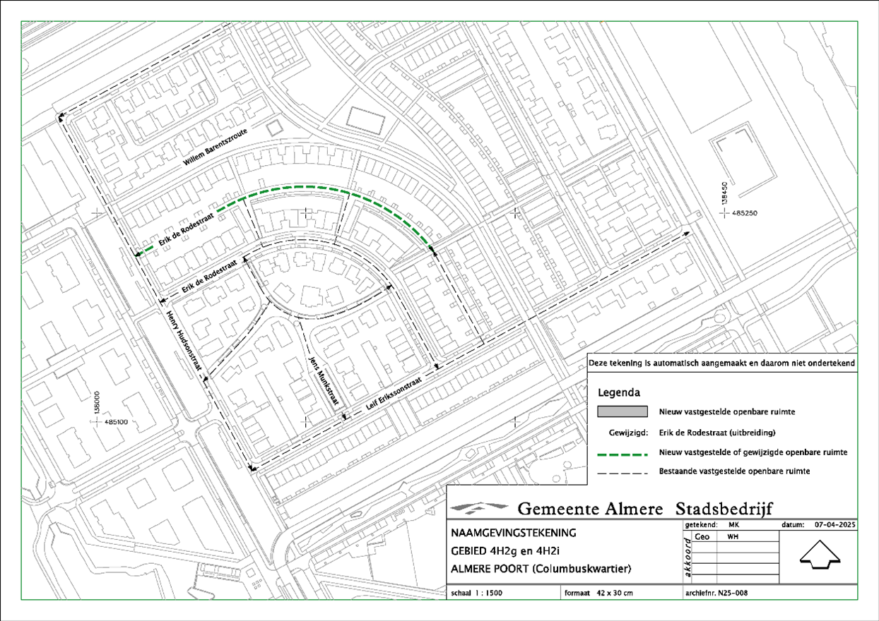 Situatietekening wijzigen Erik de Rodestraat in Almere Poort: