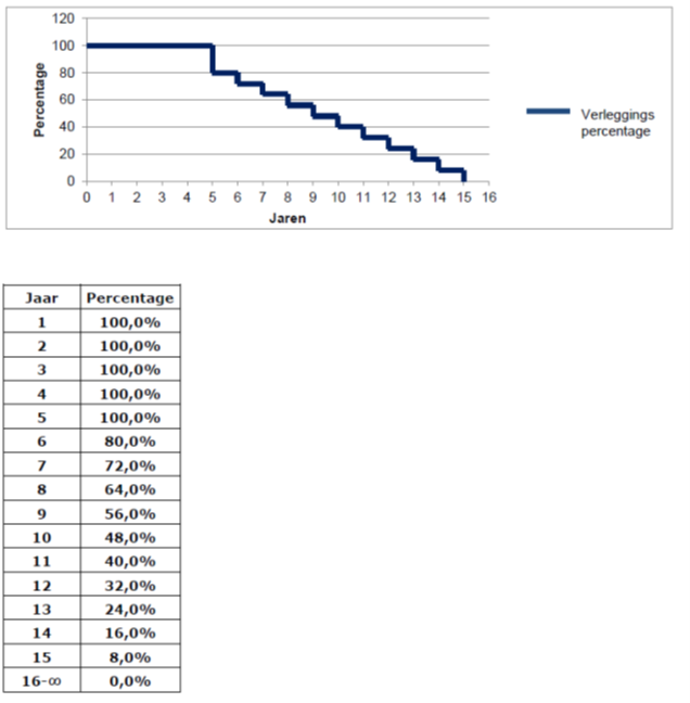 Als de netbeheerder een verzoek ontvangt na vijf jaar tot en met vijftien jaar, gerekend vanaf de datum waarop toestemming is verleend, zal de gemeente 80% van het schadebedrag na vijf jaar tot 0% na vijftien jaar (trapsgewijs) als nadeelcompensatie uitkeren volgens het schema weergegeven in bijlage 2.