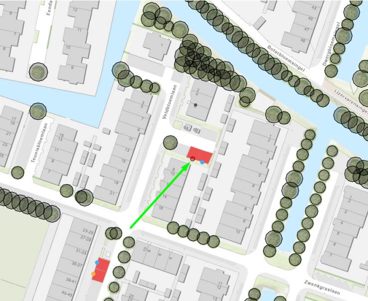 Veldbloemlaan (ter hoogte van zijgevel huisnummer 8; wegvak: op de pakeerplaats tussen Veldbloemlaan 16 en Veldbloemlaan 2)