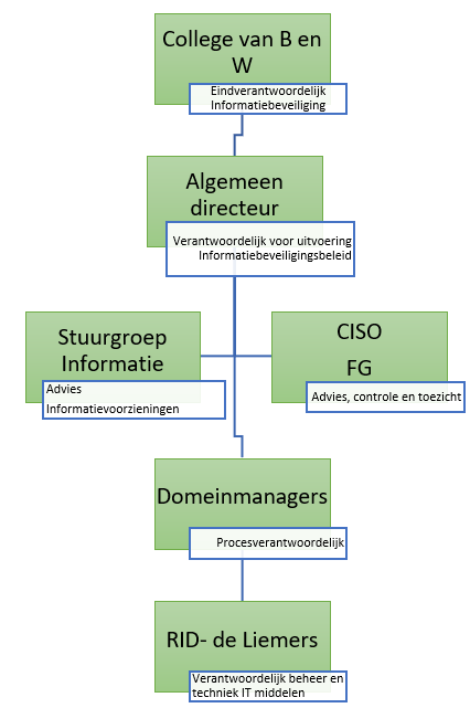 De directie zorgt dat alle (persoons)gegevens, processen en systemen en de daarbij behorende middelen altijd onder de verantwoordelijkheid vallen van een domeinmanager. De directie zorgt dat de domeinmanagers zich verantwoorden over de beveiliging en bescherming van de privacy van de (persoons)gegevens of andere informatie die onder hen berust. De directie zorgt dat de eindverantwoordelijke portefeuillehouders binnen het college gevraagd en ongevraagd geïnformeerd worden over de mate waarin informatiebeveiliging en privacybescherming een onderdeel is van het handelen van de bedrijfsvoering. Op die manier kan het college zich ook verantwoorden naar de raad.