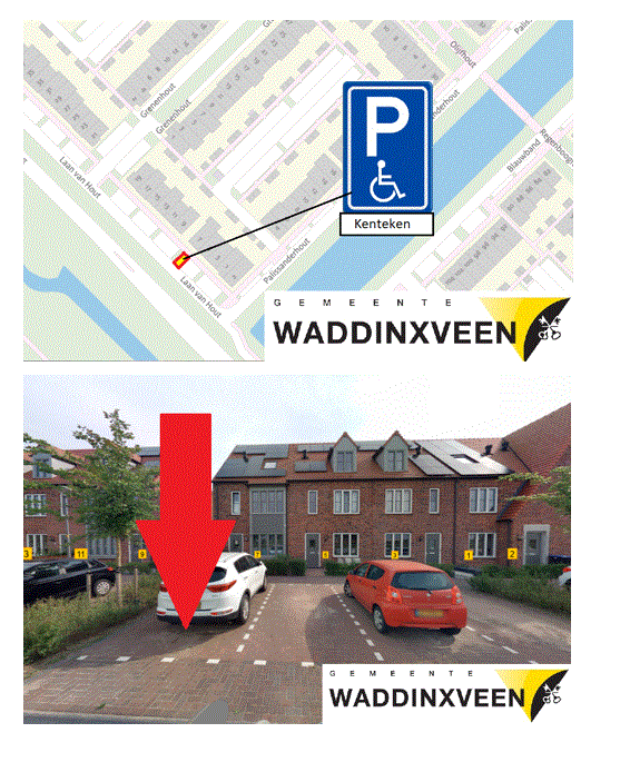 Verkeersbesluit voor het aanwijzen van een gehandicaptenparkeerplaats op kenteken aan Laan van Hout te Waddinxveen