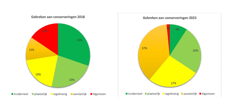 Om tot een goede analyse te komen van de technische staat en hiermee inzichten te krijgen ten behoeve van verbetering van het beheer zijn de complete toestand-inspecties van zowel 2018 als 2023 geanalyseerd.