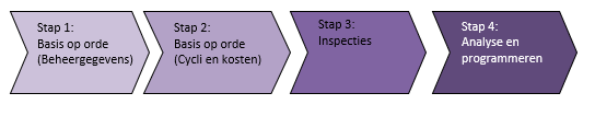 Hierbij zijn de onderhoudsmaatregelen groot onderhoud en vervanging van elk object binnen de beheerdiscipline doorgerekend. Deze doorrekening wordt binnen het paspoort van het beheersysteem geborgd. De benodigde variabelen voor doorrekening zijn: Ontwerplevensduur, kostprijs van de onderhoudsmaatregel en aanlegjaar/restlevensduur van het object.