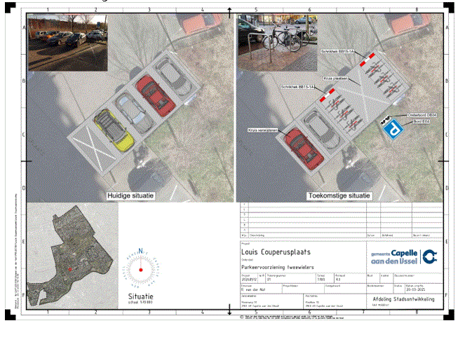 Verkeersbesluit voor het opheffen van (1) gehandicaptenparkeerplaats op kenteken aan Louis Couperusplaats ter hoogte van de ingang van Capelstaete en opheffen van (2) parkeerplaatsen voor de aanleg van stallingsplekken voor (brom)fietsers op de parkeerplaats van de Louis Couperusplaats te Capelle aan den IJssel