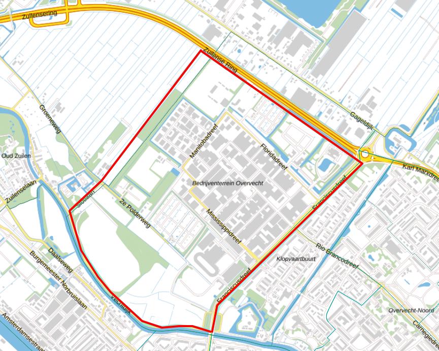 Bijlage 1 : Begrenzing van het aangewezen gebied, behorende bij het voorgenomen besluit de autobranche op bedrijventerrein Nieuw Overvecht opnieuw aan te wijzen als vergunningplichtige bedrijfsmatige activiteit