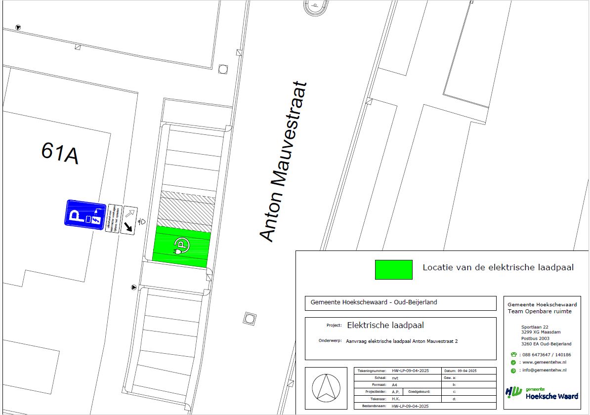 Realisatie oplaadpunten elektrische voertuigen Anton Mauvestraat Oud-Beijerland