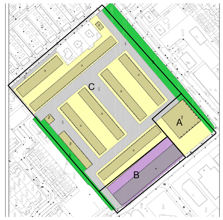 De voormalige bedrijfslocatie bestaat voor het merendeel uit woningbouw. Slechts een smalle strook bedrijfspanden, met milieutechnisch gezien zeer lichte bedrijvigheid, aan de Eerste Kruisweg dient als buffer voor de zwaardere bedrijvigheid aan de overzijde van de Eerste kruisweg. Wat woningbouw betreft ligt in de noordwestelijke punt van de locatie een, naar Fijnaartse begrippen, fors appartementengebouw. De overige woningen zijn grondgebonden, en voornamelijk rijwoningen en twee-onder-een-kap woningen.