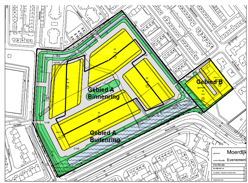 Naar de omgeving toe is gebied A een opzichzelfstaande woonwijk. De wijk wordt aan alle zijden gescheiden van bestaand gebied door middel van openbare ruimte met daarin water.