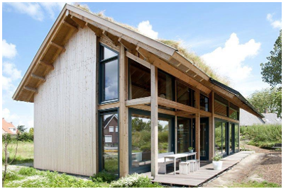 Figuur 2: voorbeeld houten gevel en dak met groene vegetatie (bron: VIBA)