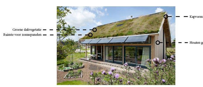 Figuur 1: voorbeeld houten gevel en dak met groene vegetatie (bron: VIBA)