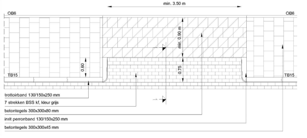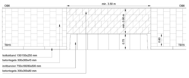 Onder de inrit wordt als fundering een pakket van 25 centimeter puin verwerkt.