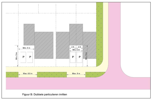 Breedte inrit op eigen terrein (2 woningen) Maximale breedte inrit openbaar gebied