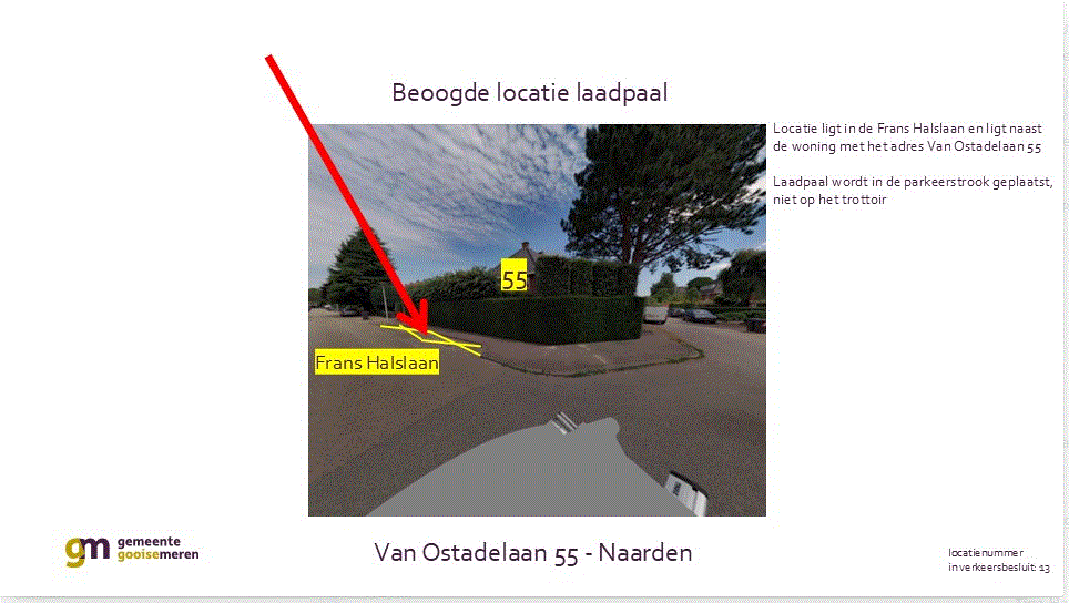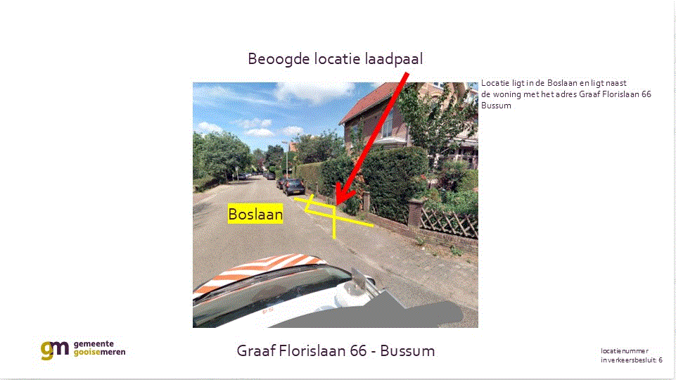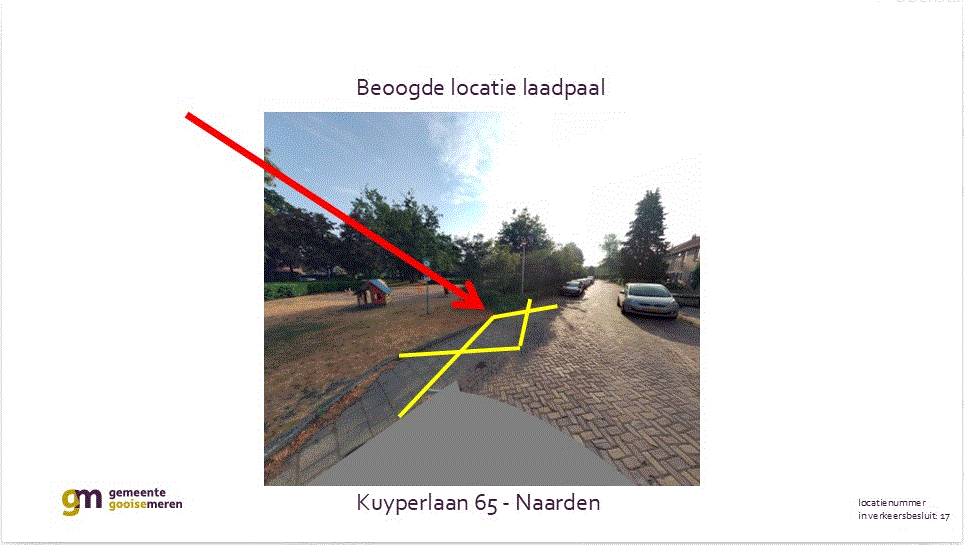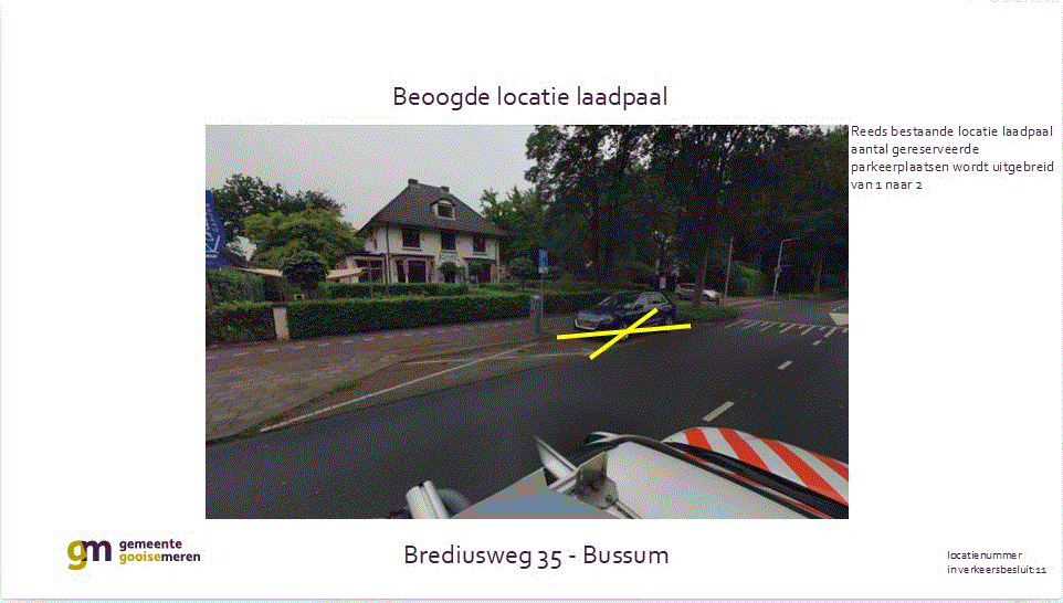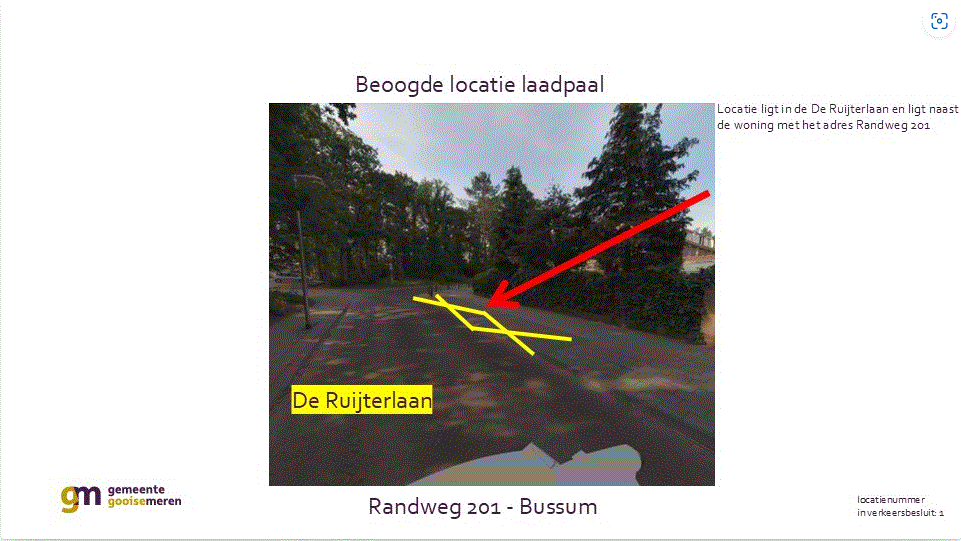 De gemeente Gooise Meren heeft naar aanleiding van verzoeken van (toekomstige) e-rijders en op basis van het gebruik van bestaande laadpalen besloten om voor het laden van voertuigen op een aantal locaties parkeerplaatsen te reserveren. Per beoogde locatie worden twee parkeerplaatsen voor het laden gereserveerd. Het laden vindt plaats door middel van een laadpaal.