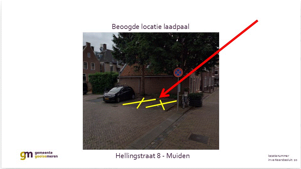 Auto’s die niet op kunnen worden geladen mogen niet op de twee voor het laden gereserveerde parkeerplaatsen parkeren. Om het niet mogen parkeren in juridische zin mogelijk te maken is dit verkeersbesluit genomen.
