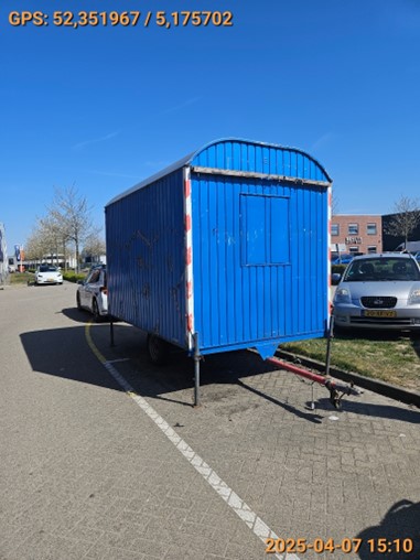 Aan de Editiestraat ter hoogte van de Basic Fit te Almere is een bouwkeet geplaatst in strijd met het bepaalde in artikel 5:5 van de Algemene Plaatselijke Verordening (APV 2011. Op grond van dit artikel is het verboden met een voertuig dat voor recreatie of anderszins voor andere dan verkeersdoeleinden wordt gebruikt zoals een caravan, een kampeerwagen, een aanhangwagen, een keetwagen of ander dergelijk voertuig langer dan op drie achtereenvolgende dagen zonder wezenlijke tijdsonderbreking te plaatsen of te hebben op de weg binnen de bebouwde kom.