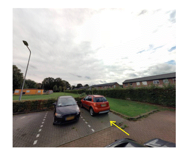 Voorstel is de gehandicaptenparkeerplaats te situeren op de aangegeven locatie in de bijgevoegde foto(’s) en/of tekening(en).