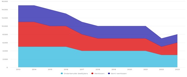 In Dordrecht zijn ca. 8.000 personen potentieel alsnog (extra) inzetbaar: ca. 2.000 semi-werklozen, 3.000 werklozen en 3.000 onderbenutte deeltijders. Dit betreft evenwel een forse afname in het afgelopen decennium: in 2014 noteerde Dordrecht nog een onbenut arbeidspotentieel van 15.000 personen.