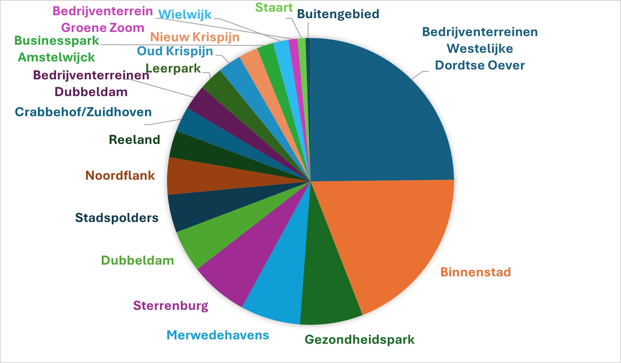 Buiten de bedrijventerreinen is de binnenstad een belangrijke werklocatie met ca. 19% van de banen in de stad. Het Gezondheidspark (7%) en het Leerpark (3%) leveren beide eveneens een significant aandeel. Beide locaties bevatten nog planologische ruimte om werkgelegenheid toe te voegen. De wijken die hoofdzakelijk als woongebieden worden gekenmerkt, huisvesten gezamenlijk 34% van de banen. Deze wijkeconomie bevat zowel de wijkwinkelcentra en andere wijkvoorzieningen alsook Dordtenaren met bedrijvigheid aan huis.